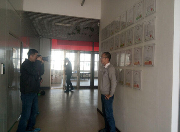 記著拍攝了崔建豐總經(jīng)理與專(zhuān)利墻的合影。